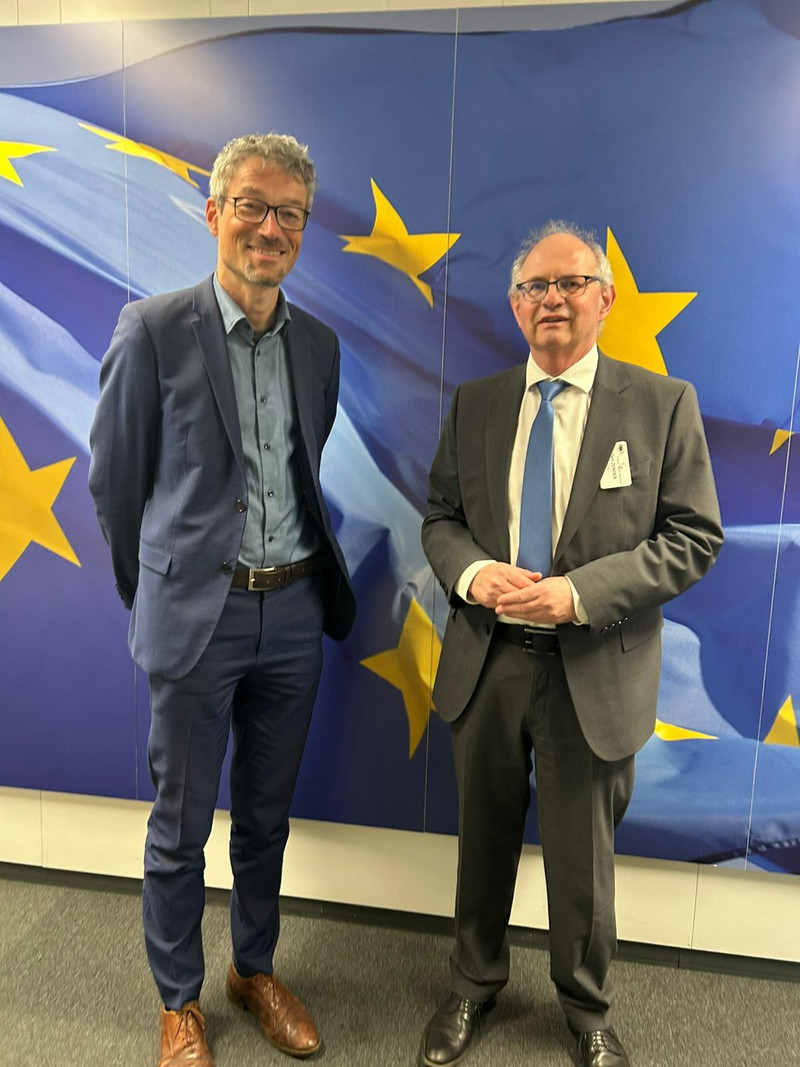 Außerdem hatte sich Staatssekretär Zender über die Umsetzung der EU-Nitratrichtlinie ausgetauscht. Mit Jan Ceyssens, stellvertretendem Kabinettschef bei Umweltkommissarin Jessika Roswall, diskutierte er die Möglichkeit für die Bundesländer, das Düngerecht innerhalb der Richtlinie individuell zu gestalten. sh